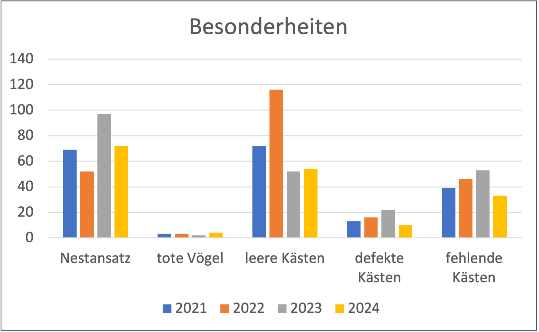 Die Nistkästen in Wohngebieten werden auch von Feld- und Haussperlingen belegt. In den als Halbhöhle